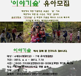 공지사항 썸네일형 리스트형 9월 들살이 안내 9월 들살이 코스모피아 천문대여행 - 별들에게 물어봐!! 두꺼비 친구들과 함께 밤하늘의 별을 헤는 별자리 여행을 떠나 봐요. 많은 별자리와 은하계의 비밀을 알아가며 별에 대한 관심은 더욱 커져가겠지요. 별을 보며 꿈과 희망, 상상의 나래를 마음껏 펼쳐 보자구요 가는 날 2013년 9월14일(토) 가는 곳 가평 코스모피아 천문대 출발 및 도착시간 14시시 23시30분 출발 및 도착장소 철산동 농협 앞 준비물 긴팔 옷(밤이고 산 속이라 추울 수 있습니다) 간식 담을 통. 물. 색연필 시간 일정 14시~17시 경기도 가평 코스모피아 천문대 도착/휴식 17시~18시 실내 영상강의, 천문학 기초를 배워요 18시~19시 저녁 식사 19시~22시 야외 관측 및 천체 투영실에서 별 관측 및 별자리 설명 천문 돔에서 우.. 더보기 두꺼비산들학교 협동조합 창립총회 개최 공고 ["두꺼비산들학교 협동조합(가칭)" 창립총회 개최공고] 제28조 제 4핟에 의거하여 "두꺼비산들학교 협동조합(가칭)" 창립총회를 아래와 같이 개최하오니, 설립 동의자는 참석하여 주시기 바랍니다. -아래- 일시 : 2013년 9월16일(월) 18:00시 장소 : 경기도 광명시 철산동 449-1 광명시자원봉사센터 회의실 참석 : "두꺼비산들학교 협동조합" 참여를 희망하는 설립 동의자 안건 -창립총회 개최 -정관 승인 -사업계획서. 수지 예산 계획서 승인 -이사장 등 임원 선출 -기타 사항 2013년 9월1일 두꺼비산들학교 협동조합(가칭) 발기인 대표 조은주(인) 더보기 협동조합 세무 실무 교육있습니다. 더보기 2013년 하반기 이야기숲 원아모집 더보기 2013년 하반기 이야기숲 원아모집 더보기 7월 들살이 연기 안내 13일 폭우로 연기를 하고 나니 일이 쉽지가 않습니다. 27일로 다시 날짜를 잡아 현장과 식당, 차량 모두 다 예약을 했는데 방학 후 휴가철이라 그런지 참석을 못하는 친구들이 너무 많네요.. ㅠ.ㅠ 하여 다시 취소 전화 전화... 어차피 7,8월 중에는 어려울 것 같고 개학한 후 다시 일정을 잡아 연락을 드리겠습니다. 9월 둘째주 들살이는 예정대로 고고씽~~ 기다리고 기다리던 우리 두꺼비들 너무 실망할 것 같아 마음이 아픕니다. 하지만 좋은 날짜 잡아서 꼭!!! 갈 거니까 너무 실망하지 말고 즐거운 방학 보내고 다시 만나요^^* 더보기 7월 들살이 안내 7월 들살이 물고기야 안녕? 토종물고기를 찾아서 유난히 일찍 무더위가 찾아왔어요. 이럴 때 필요한 건 바로 “풍덩!” 우리 강에 사는 우리 물고기를 찾아보고 신나는 물놀이도 하면서 더위를 싹 날려보자구요!! 가는 날 2013년 7월27일(토요일) 가는 곳 경기도 흑천 출발 및 도착시간 아침8시/오후6시00분 출발 및 도착장소 철산동 농협 앞 준비물 갈아입을 옷2벌(옷 담을 봉지), 스포츠샌들(아쿠아슈즈), 수건, 물, 간식 담을 통, 관찰통, 튜브 등 물놀이 용품, 연필과 색연필 시간 프 로 그 램 08:00 ~ 10:00 흑천으로 출발~~ 10:00 ~ 12:00 토종물고기란? 토종물고기 찾아보기, 관찰하기 12:00 ~ 13:00 맛있는 점심 먹어요 (밥알을 남기면 불합격~ 깨끗하게 먹어야 합격~) .. 더보기 6월들살이 안내 “생명의 근원! 갯벌을 지켜라!” 여름이 빨리 찾아오는 것 같아요. 지구가 자꾸만 뜨거워져가는 것이 실감되는 요즘입니다. 갯벌과 바다는 이산화탄소를 흡수해 지구가 더워지는 것을 막아주고 있답니다. 고마운 갯벌에서 살고 있는 작은 친구들과 만나 인사해요^^ 신나는 갯벌 놀이도 기대하자구요~~ 가는 날 2013년 6월8일(토요일) 가는 곳 대부도 쪽박섬 출발 및 도착시간 아침8시 /오후6시 출발 및 도착장소 철산동 농협 앞 준비물 갈아입을 옷(젖은 옷 담을 봉지), 양말, 수건, 필기도구. 물, 모종삽 또는 안쓰는 주걱, 관찰통( 투명한 플라스틱 통 등). 간식(꿀 떡) 먹을 그릇 시간 일정 08:00 ~ 10:00 쪽박섬 도착 (갯벌이야기 하면서 가요) 10:00 ~ 12:00 갯벌 탐사 (관찰하고 알고 .. 더보기 5월 들살이 안내 “봄! 숲을 느끼다~~” 금세 지나갈 것을 알기에 더 예쁘고 귀하게 느껴지는 아기 같은 연둣빛 산음 숲, 자연 그대로의 모습을 많이 품고 있고 오염되지 않은 아름다운 계곡이 있는 치유의 숲에서 크게, 길게 숨 한번 들이켜 보고 나무향, 풀향, 꽃향에 취해봐요 *^^* 가는 날 2013년 5월11일(토요일) 가는 곳 경기도 양평 산음자연휴양림 출발 및 도착시간 아침8시 /오후6시 출발 및 도착장소 철산동 농협 앞 준비물 갈아입을 옷, 양말, 수건, 필기도구. 물, 개인컵. 개인수저, 빈도시락통(비빔밥담아먹을그릇) 시간 일정 08:00 ~ 10:00 양평 산음휴양림 도착 (숲이야기 다큐멘터리 보면서 가요) 10:00 ~ 11:30 낙엽송과 잣나무 숲이 서로 조화로이 어우러진 숲 속 체험 11:30~13:00.. 더보기 숲안내자교육 3강안내 일시 : 2013.5.6(월) 오전 10시~12시 강의 후 산들학교에서 같이 점심 먹어요. 장소 : 두꺼비산들학교 강사 : 코딱지 류창희 샘 주제 : 왜 숲 교육인가? **이후 식물 이나 곤충 수업을 할 때 루뻬가 있으면 좋습니다. 없어도 함께 보면 됩니다. 8배 루뻬가 있고 10배 확대 루뻬가 있으니 필요하신 분은 에코샵홀씨 (www.wholesee.com)에서 구매하셔도 되고 제게 신ㅊㅇ하셔서 함께 구매하셔도 좋겠습니다. 필요하신 분만 신청하세요. **첫 강을 해 주셨던 한영식 선생님