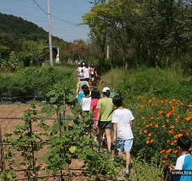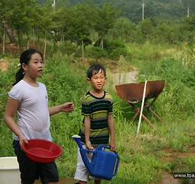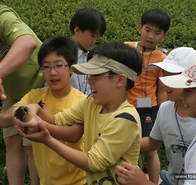 들살이 갤러리 썸네일형 리스트형 온신초 거미줄 만들기-9월23일 오늘도 학교에서 수업을 진행합니다. 아이들이 산들학교엔 안가냐고 묻습니다. 신종플루 땜시 학교 밖을 나가는 일이 어렵게 되어 이번에도 학교 안에서 진행합니다. 오늘은 '거미줄 치기' 몸 속에서 실이 나오는 거미의 신비로운 생태를 알아보고, 우리 친구들이 거미가 되어 거미줄을 쳐봅니다. 요렇게 거미줄을 만들었습니당 거미줄을 치기 위해서 먼저 거미란 녀석에 대해 사진자료를 가지고 공부를하고 나무에 걸려있는 거미줄을 찾아 살펴본 후 거미줄을을 치기 위한 설계도를 만들었지요. 그리고 나서 거미줄의 틀을 만들고 거미가 다녀도 끄떡없는 세로줄을 만들고, 이제 먹잇감이 걸려들 끈적이는 가로줄을 이었습니다. 거미가 보면 깜짝 놀라겠지요? 더보기 9월 들살이-기차여행1 더보기 9월들살이-기차여행2 더보기 9월들살이-기차여행3 더보기 9월들살이-기차여행4 더보기 9월들살이-기차여행5 더보기 9월9일 온신-곤충이야기2 작은 학교라 더욱 아름다운 온신초등학교에는 갖가지 식물과 연못이 있습니다. 풀숲사이, 나뭇가지위에서 조심조심 채집한 곤충들을 관찰하느라 아이들의 눈망울이 반짝입니다. 더보기 9월9일 온신-곤충이야기 오늘은 학교에서 곤충 들살이를 했습니다. 더보기 금강정사 어린이들 생태나들이 8월23일(일) 금강정사 어린이법회 친구들이 두꺼비산들학교를 찾았어요. 오늘은 법회대신 신나는 들살이... 법회친구들이라 그런지 집중도 잘하고 활동도 적극적으로 열심히 잘 했답니다. 햇살이 좀 따갑긴했지만 했지만 그래도 간간이 시원한 바람이불어와 기분좋은 날씨였습니다. 환삼덩굴로 훈장을 붙여 늠름한 군인아저씨도 되어보고, 칡덩굴을 엮어 머리에 쓰니 인디안 추장이 되었네요.. 구름산에서 흘러내려오는 물 속에 사는 아주 작은 생명들을 살펴보았어요. 가재와 하루살이 유충, 측범잠자리 유충, 각다귀 유충, 옆새우등을 관찰했지요. 돌아가면서 관찰하고 퀴즈도 하고 새로 만난 친구들과 재미있는 만남의 시간이었습니다. 관찰이 끝난 후에 모두 모두 제 살던 곳에 조심스럽게 돌려놓아주었답니다. 어린이법회 친구들과의 첫 만.. 더보기 야생일박이일!!!(5) 8월14일~15일 두거비들의 야생일박이일이 시작되었습니다. 처음 만난 친구들도 있어서 우선 물총놀이로 몸풀기~~~ 물총놀이 후 두꺼비들 모두 절친이 되었어요^^* 물총이 없어도 좋아요. 바가지, 페트병, 물조리개.. 주변에 있는 모든 것이 물총으로 변신!! 산들학교 힘센돌이 때죽나무가 물총전사가 되었네요.. 좋아하는 친구에게 물쏘기를 하랬더니.. 진수가 인기짱이네요~~ 태호도 역시 사랑의 물세례를 듬뿍 받았습니다~ 물세례를 받아도 좋아좋아~~ 역시 여름엔 물놀이가 최고! 더보기 야생일박이일!!!(4) 시원한 수박을 간식으로 먹고나서 물속친구들을 만나러 숲 속으로 고고씽! 숲 속 길사이에 작은 계곡이 있답니다. 요런 길이 있는줄은 몰랐지요? 숲에서 내려오는 맑은물이 있는 곳이에요. 이곳에는 어떤생물들이 살고 있을까요? 뜰채로 계곡 바닥도 긁고, 어린두꺼비들의 출현에 놀라 이사가던 가재도 딱 걸렸어요. 영문도 모르고 잠시 친구들을 위해 관찰통으로 이사온 작은 물속생물들은 어떤 것들일까요? 작은 몸집이 다치지않도록 붓으로 살살 옮겨서 하나씩 살펴보아요. 민들레 손에 있는 것은 가재네요~ 와우~~ 물놀이 때와는 완전 다른 진지모드~~ 물속생물들은 너무 작아서 그냥은 잘 안보여요. 관찰통에 넣고 돋보기로 확대해서 잘 관찰해보았어요~ 얄미운 모기가 친구들 팔을 깨물었어요~~ 산초나무잎을 비벼서 발라주면 가려움이.. 더보기 야생일박이일!!!(3) 이제 해가 뉘엿뉘엿 넘어가려고 해요.. 포충망을 들고 이젠 땅위에 사는 곤충들을 보러 갈거에요~~ 가는 길에 무릇이 활짝 피어 친구들을 반깁니다. 오호~~ 모성애 강한 쌍살벌 집이에요.. 와우! 무서운 말벌집도 보이네요. 말벌은 건드리면 안되요.. 곤충을 찾아라!!! 하늘을 나는 잠자리와 나비.. 그리고 땅위를 뛰어다니는 메뚜기, 방아깨비, 여치, 배짱이 등등...아! 무서운 사마귀도 두꺼비들 앞에서는 꼼짝마라네요 ㅋ 곤충을 찾다보니 작은 톱풀이 앙증맞게 피어있었어요 저기다 저기!! 에궁 저래가지고 날아다니는 잠자리를 잡을 수 있을라나? ㅎㅎㅎ 게임을 진행하느라 우리 친구들 저녁재료 복불복 게임 사진이 없넹.. 코끼리코로 다섯바퀴 돌고 신발을 던져서 맞추는 재료를 획득하는거죠..어디서 본 듯 하죠? ㅎㅎ.. 더보기 야생일박이일!!!(2) 와우~ 부지런한 친구들은 아침기상노래가 울리기도 전에 벌써 일어나 밤새 모락모락타고있던 모깃불에 다시 불을 지핍니다. 산 속의 아침은 조금 서늘해서 불을 피우고 쪼그려 앉아있으니 따뜻한 온기가 몸을 풀리게 하네요. 그리고 뭐니뭐니해도 역시 물놀이와 불놀이가 최고라니까요..ㅎㅎ 후후 불어서 불씨를 살리고... 부지런한 호랑거미는 벌써 아침식사를 하고있네요.. 나팔꽃도 활짝 피엇어요.. 하얀눈이 덮힌 바위라는 뜻을 가진 설악초도 상쾌한 아침을 맞이하고 있습니다 친구들이 먹을 아침을 준비하고 있는 하늘지기.. 뱀이다아~ 